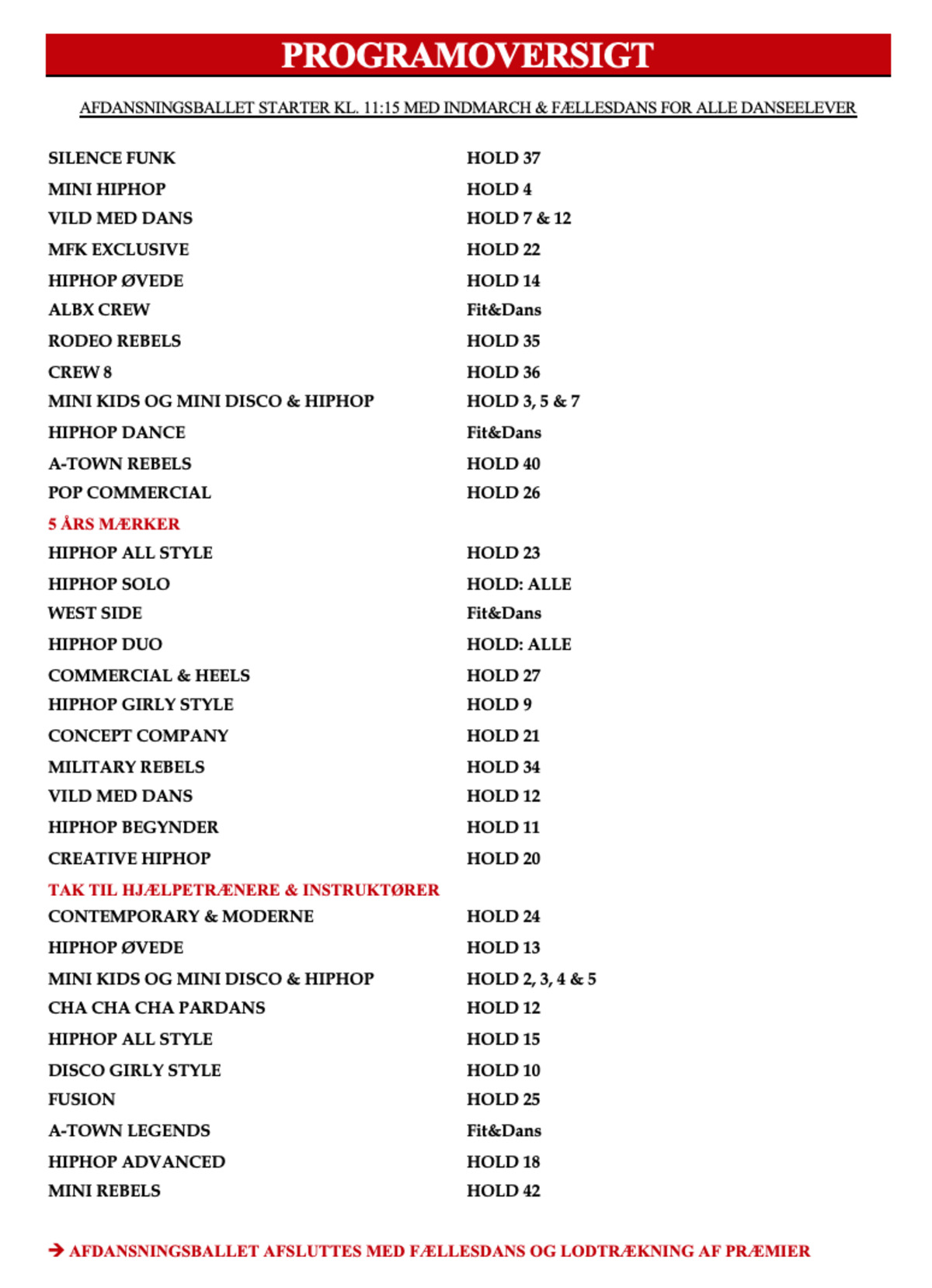 DØRENE ÅBNER FOR TILSKUERE OG DANSERE KL. 10:30