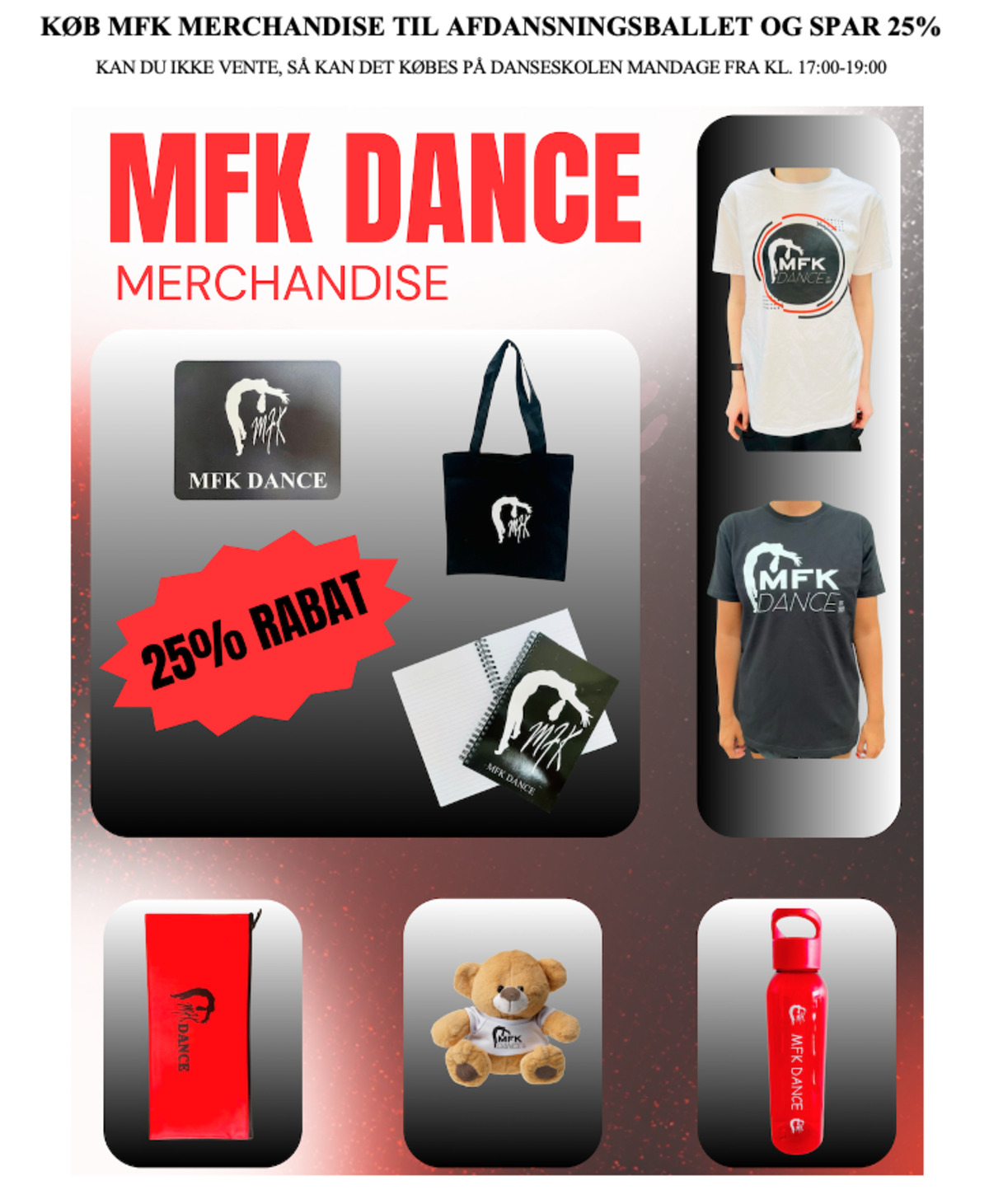 Har du danset hos MFK Dance i 5 sæsoner, så får du et 5 års mærke til afdansningsballet. Man vil ikke blive kaldt op ved navn, så sørg for på forhånd at undersøge, om du skal have 5 års mærke.