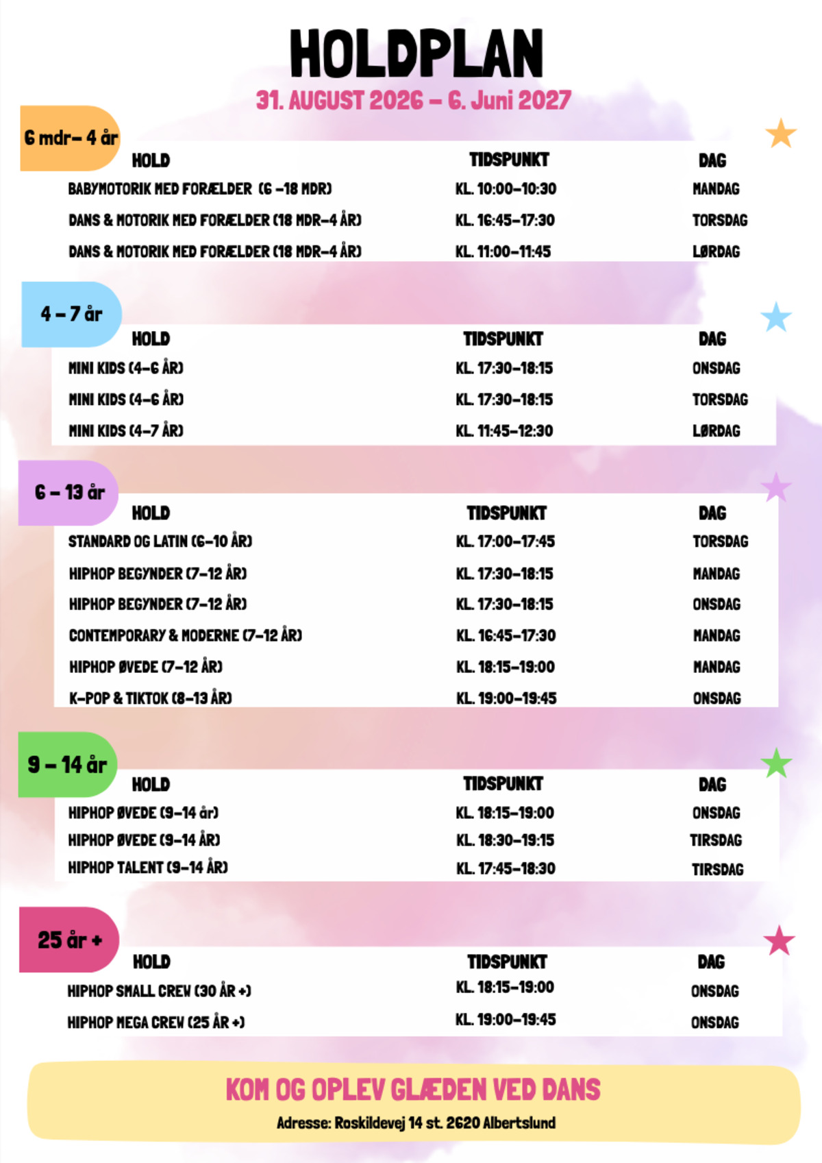 Dansesæson fra 31/8-2026 - 30/5-2027